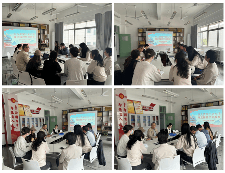 围绕 “分类指导、争先进位” 工作,支部针对不同岗位党员进行分组讨论。教学岗党员聚焦提升教学质量,提出要精简教学环节中的冗余流程,避免形式主义,将更多精力投入到提升员工知识技能与综合素质上;科研岗党员则表示在项目申报与研究过程中,严格遵循经费使用规范,杜绝浪费与违规支出,以严谨的科研作风争先进位。在热烈的讨论中,党员们达成共识:只有严守八项规定精神,才能在各自岗位上真正做到 “分类指导、争先进位”。