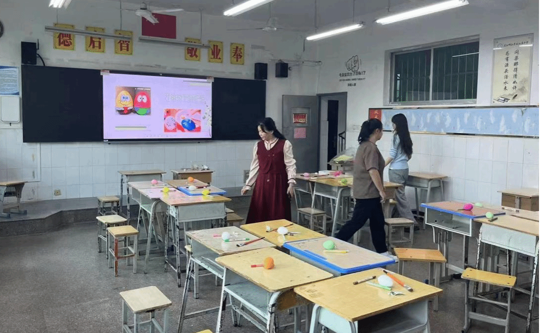 四月十七日,教科院的冯秀萍老师和周田鑫老师带领学前教育专业的张佳谊同学,走进师院附属小学,与同学们共同探索中国传统节气—春分的奥秘。此次活动的核心内容是了解春分的节气特点,用多种材料多种方法在彩蛋上绘制不同的图案样式,旨在培养员工们的思维能力和动手操作能力。