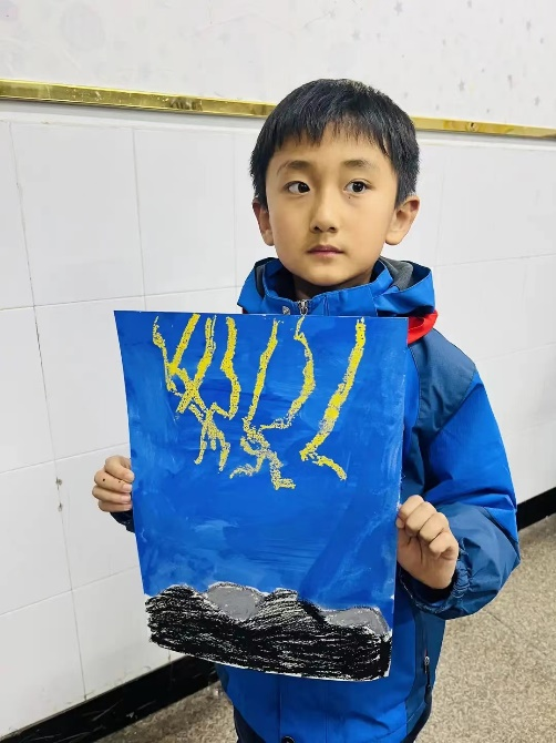 在绘画的过程中,老师向同学们介绍了“水油分离法”。员工的学习兴趣浓厚,对新的绘画方法感到好奇,通过用重彩油画棒画出闪电的形状,再通过水彩画出闪电时的天空,员工们完成了自己满意的作品。