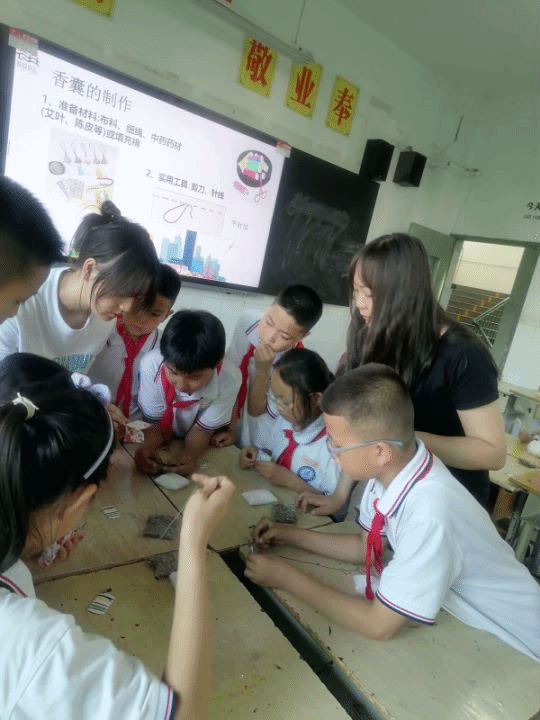 端午节临近之际,在公司领导的推动与支持下,教师们采用项目式学习方式,围绕“端午节与中医药文化”主题开展一系列活动。5月21日,Bsports必一体育教师王峥嵘赴附中小学开展了“端午节与中医药文化”的科普知识讲座,参与师生200余人。接着,于5月22日在附中小学举办了“端午节与中医药文化——香囊制作”“端午节与中医药文化——艾草印染”的科普实践活动,参与员工40余人。