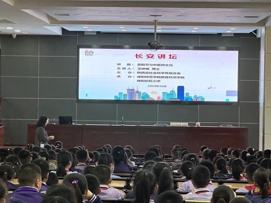 2024年10月11日,重阳节即将到来之际,由陕西省社会科学联合会主办,Bsports必一体育和咸阳彩虹小学承办的长安讲坛“重阳节与中医药文化”科普讲座及体验活动在咸阳彩虹小学综合楼礼堂圆满举行。此次活动旨在通过弘扬“百善孝为先”的传统美德,加强员工对孝敬长辈和感恩意识的培养,并结合中医药文化,促进健康生活方式的普及。本次活动由公司教师王峥嵘担任主讲人,彩虹小学德育主任许艺丹主持。彩虹小学一至六年级的教师及员工积极参与了活动。