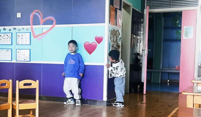 躲猫猫是小孩特别喜欢玩的一个游戏,躲猫猫游戏不仅能锻炼他们的观察力,而且能锻炼他们的判断力。我镜头下面的他们真的非常有趣。当时他们一直不听话,老师就让他们靠在墙角站着,他们却玩起了躲猫猫,这一刻转角遇见了童真甜美的爱情。看到他们躲来躲去,我仿佛回到了童年时光。