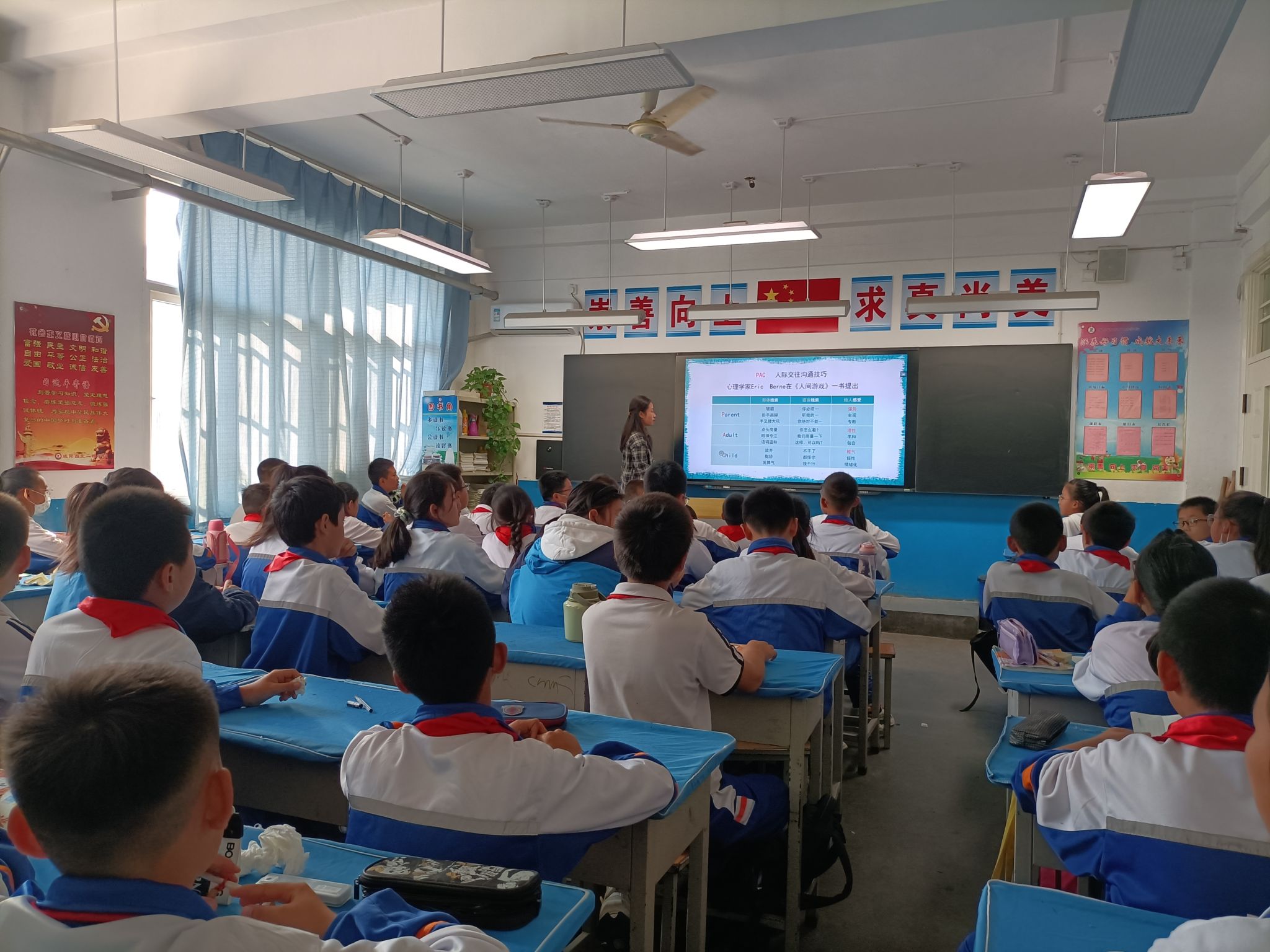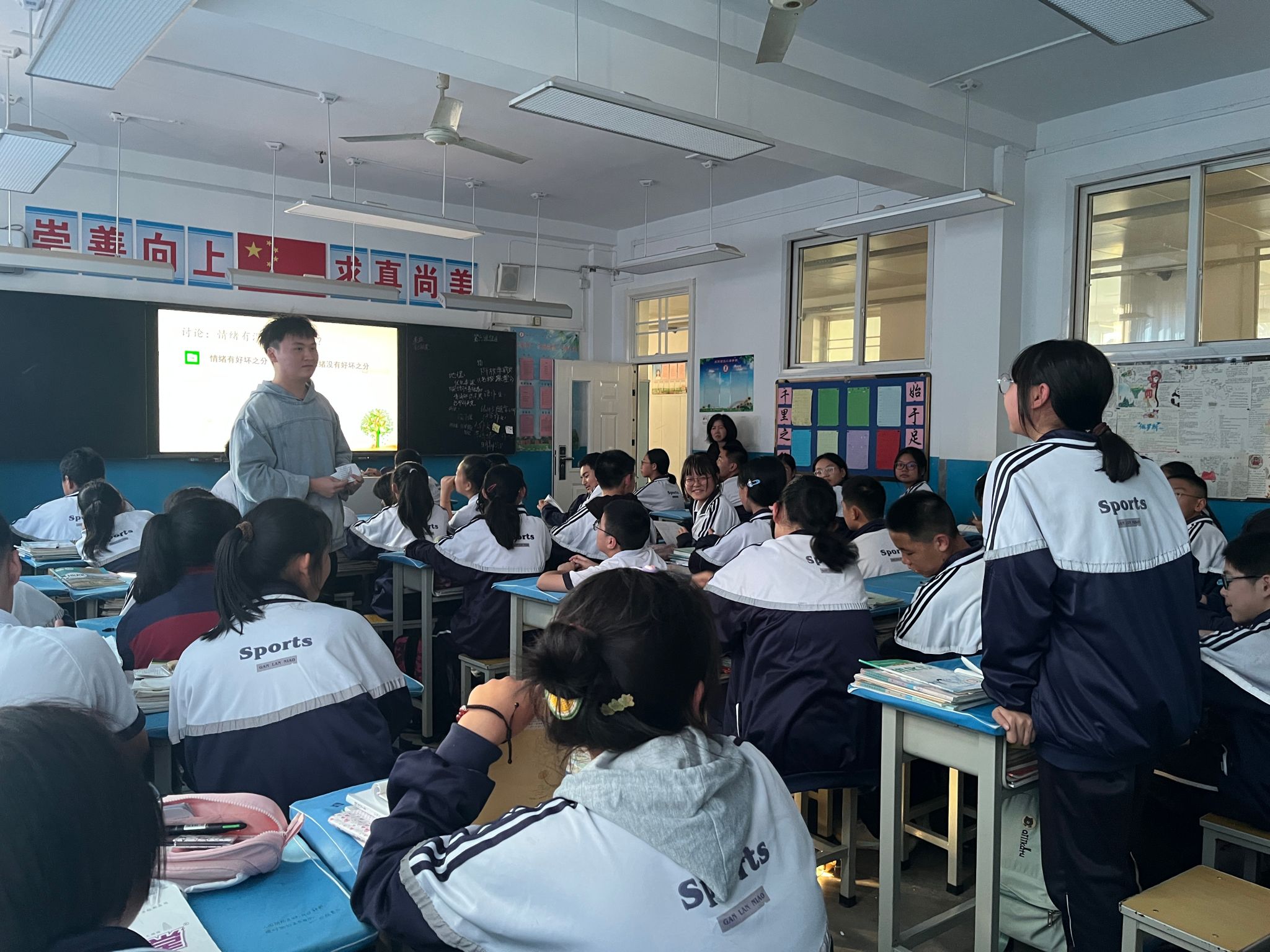 在西北二棉公司老师的带领下,同学们进入到各自负责的班级中。负责中学部的同学们主要围绕悦纳自我、人际沟通和应对挫折,引导同学们正确认识自己,正确认识他人,正确认识挫折,鼓励同学们以平和的心态看待生活和学业等方面开展专业见习活动。