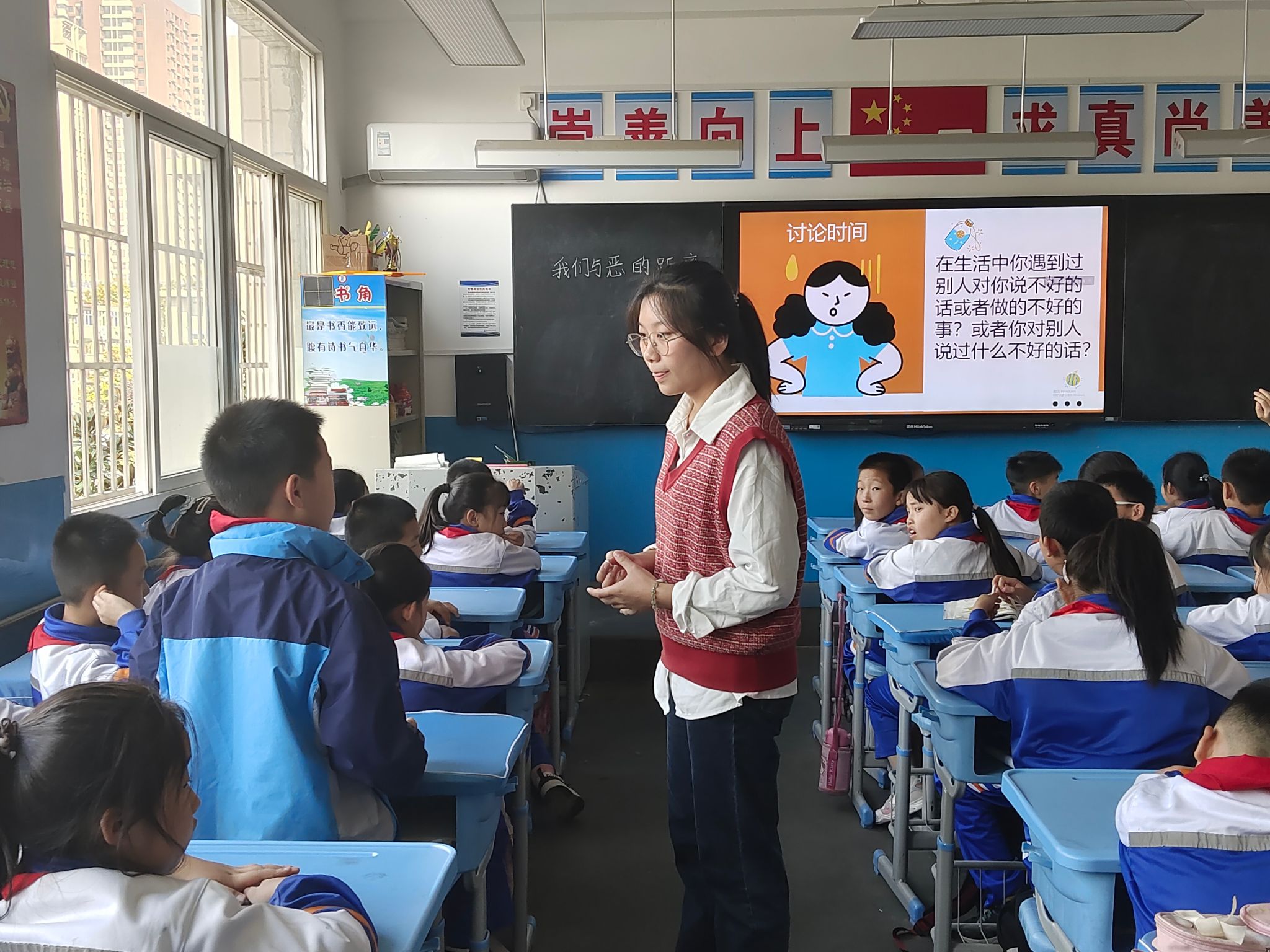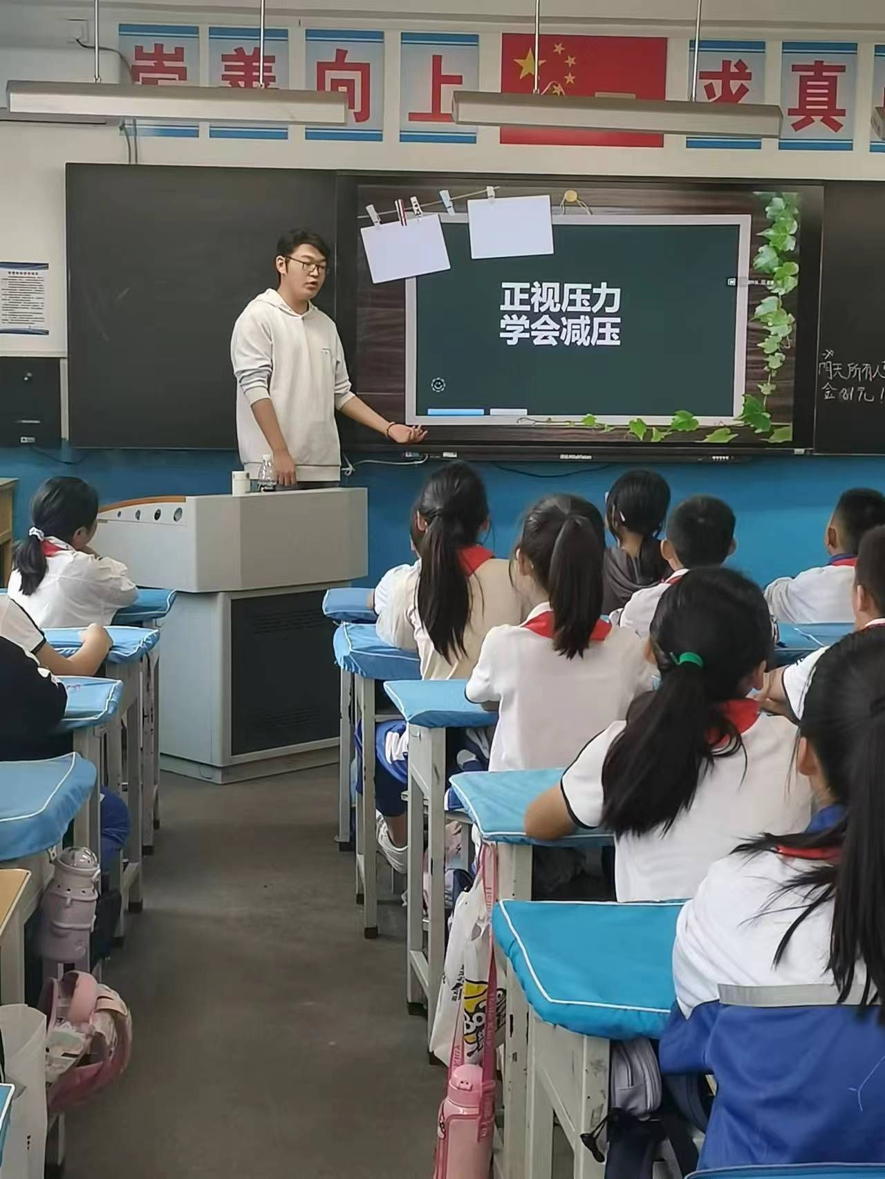负责小学部的同学们主要围绕调整情绪、培养注意力和时间管理,引导同学们培养积极的心态做情绪的小主人,并学会时间管理,轻松生活等方面开展见习活动。