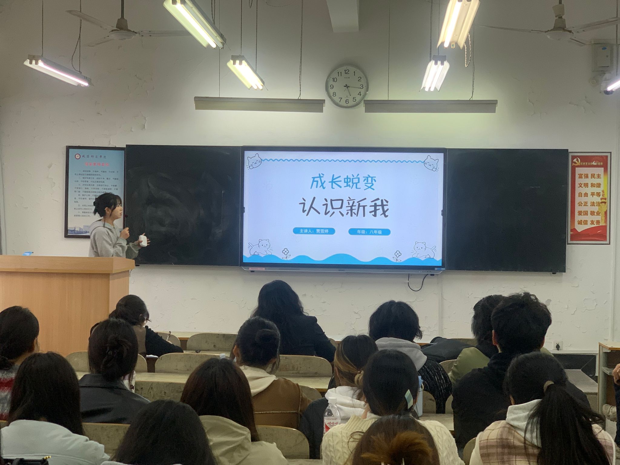 活动伊始,两位应用心理专业2301班的员工代表依次走上讲台,模拟授课场景,围绕心理学相关课程章节进行讲解。他们精心准备教案,运用多样化教学手段,结合生动案例,努力将专业知识深入浅出地呈现给台下“员工”。尽管部分同学在授课过程中稍显紧张,但都充分展现出了对知识的理解与思考。